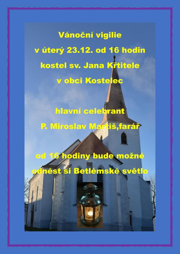 Vánoční vigilie představuje důležitou součást vánočních tradic. Tato událost se koná v kostele v Kostelci. Od 16 hodin bude možné odnést si Betlémské světlo.